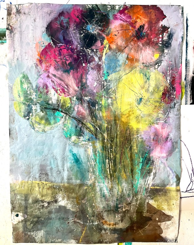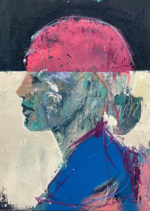 ”Jeg er optaget af at gøre det usynlige synligt. Lagene i mine malerier afspejler lagene i livet – lag, der venter på at blive opdaget eller afsløret i et nyt lys”, siger Simon Nelke